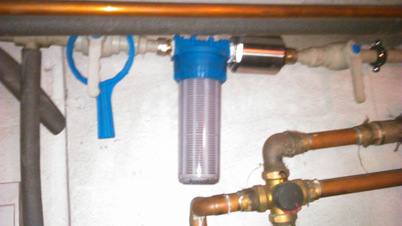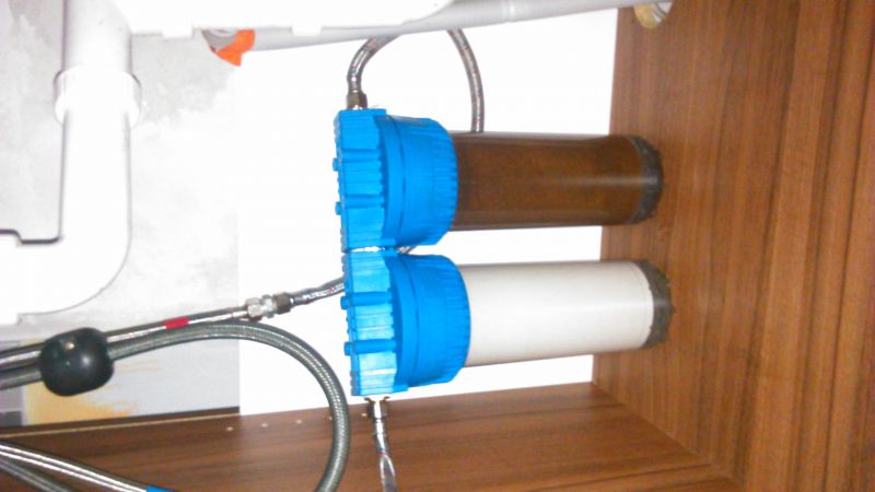 Rodinný dům s vlastní studnou. Do sklepa na hlavní přívod byl nainstalován Atlas filtr 10" G1" se síťovou vložkou na odstranění mechanických nečistot a magnetická úpravna vody Supertok proti usazování vodního kamene. Do kuch. linky pod dřez namontována sestava filtrů na změkčení vody a odstranění dusičnanů.